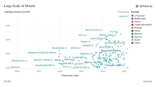 En revanche, Grok 3 se démarque d’un ordre de grandeur des autres IA pour ce qui est des coûts, comme le montre une étude d’EpochAI : l’entraînement de Grok 3 a nécessité presque un milliard d’exaflops, une puissance de calcul sans précédent.
